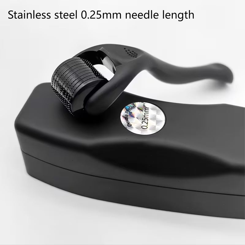 540 medical-grade titanium alloy needles ensure durability and precision. The ergonomic matte black handle provides comfortable, controlled rolling for optimal results. 0.25mm needle length is ideal for beginners and safe for frequent use.